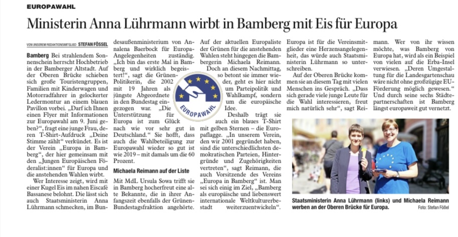 Ziel des Vereins ist es, als Bürger*innen Bewegung lokal in Bamberg zum Erhalt der europäischen Vision und zur Förderung eines europäischen Geistes beizutragen. Angestrebt werden dazu der Austausch und die Begegnung von Europäer*innen und europäisch gesinnten Menschen durch Aktionen, Information und Diskussion sowie die aktive Vernetzung von Akteur*innen, die dieses Ziel fördern wollen…. Hier weiterlesen
